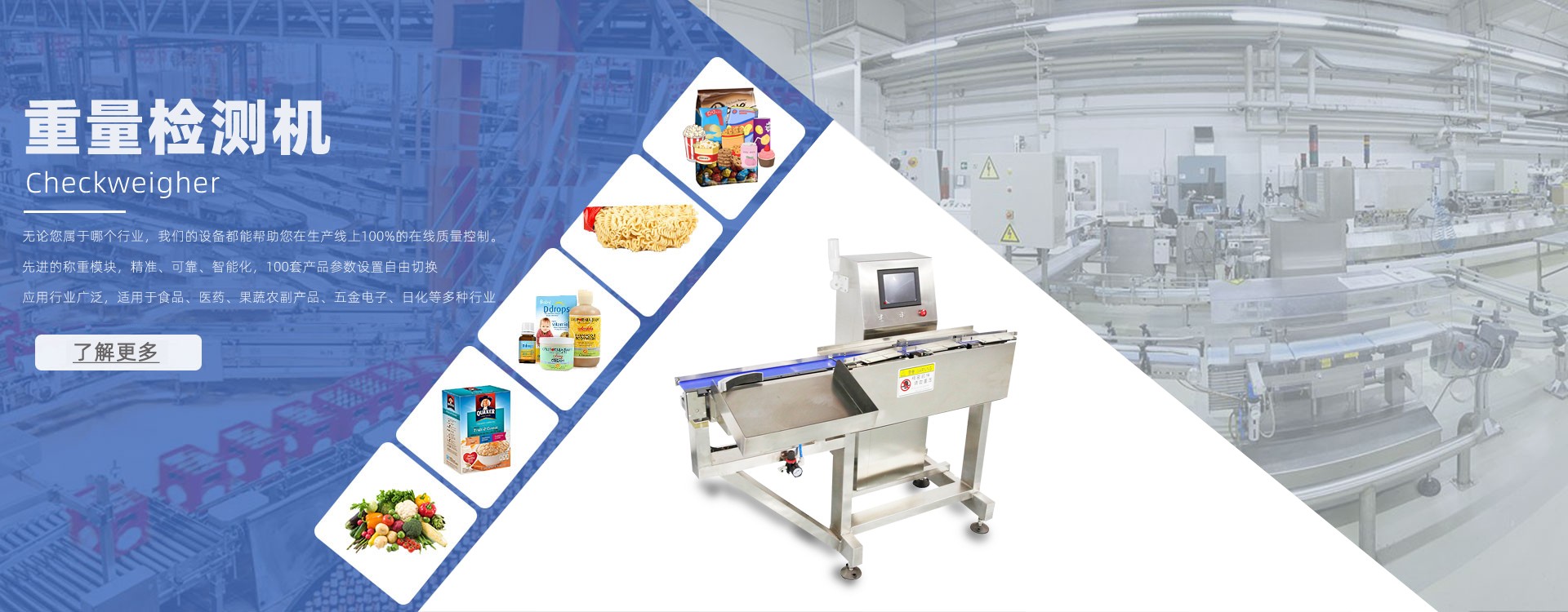 紙箱酒檢重設備 紙箱酒檢重設備,生產線100%檢測每一箱酒的重量,通過預設定的重量范圍參數,系統自動分析超重、欠重、合格品,自動從產線中推出不合格產品,合格品...